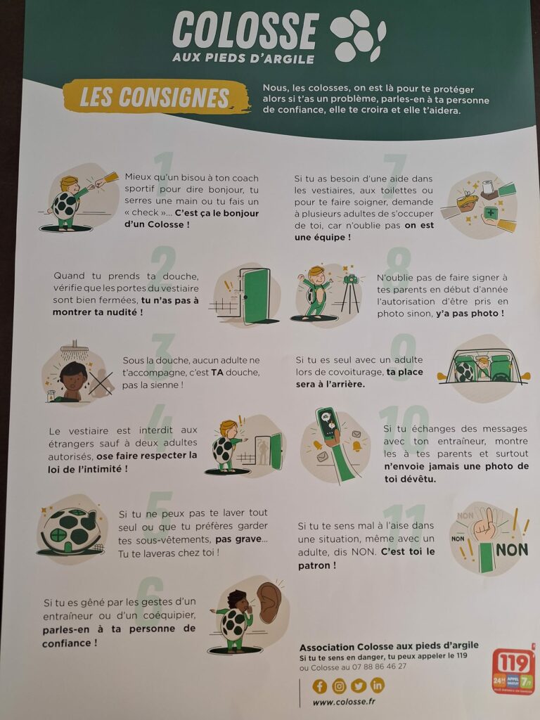 Créée en 2013 par Sébastien Boueilh, ancien rugbyman et lui-même victime, l’association Colosse aux pieds d’argile lutte contre les violences sexuelles, le bizutage et le harcèlement, notamment dans le milieu sportif. Elle intervient partout en France pour sensibiliser les jeunes, former les encadrants et accompagner les victimes. Reconnue d’utilité publique, elle collabore étroitement avec les fédérations sportives et les institutions pour faire évoluer les pratiques et les mentalités.